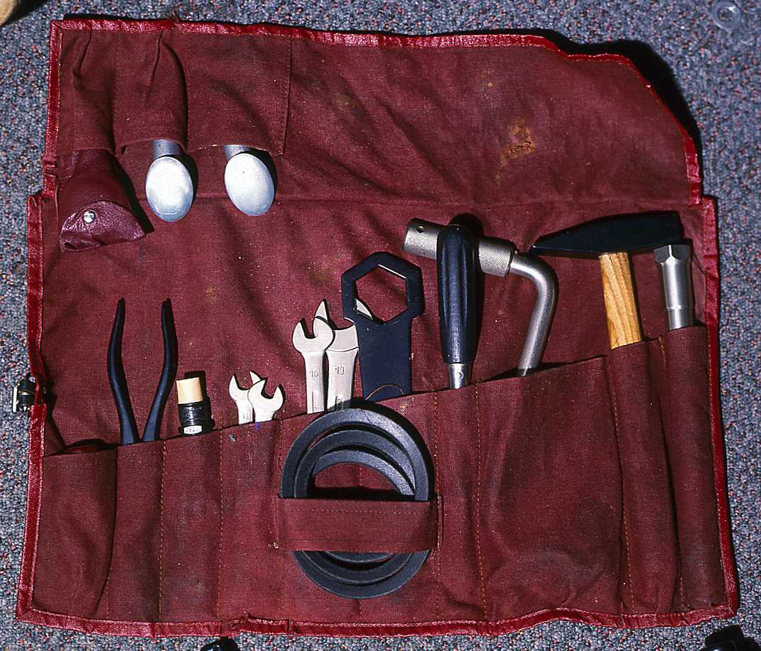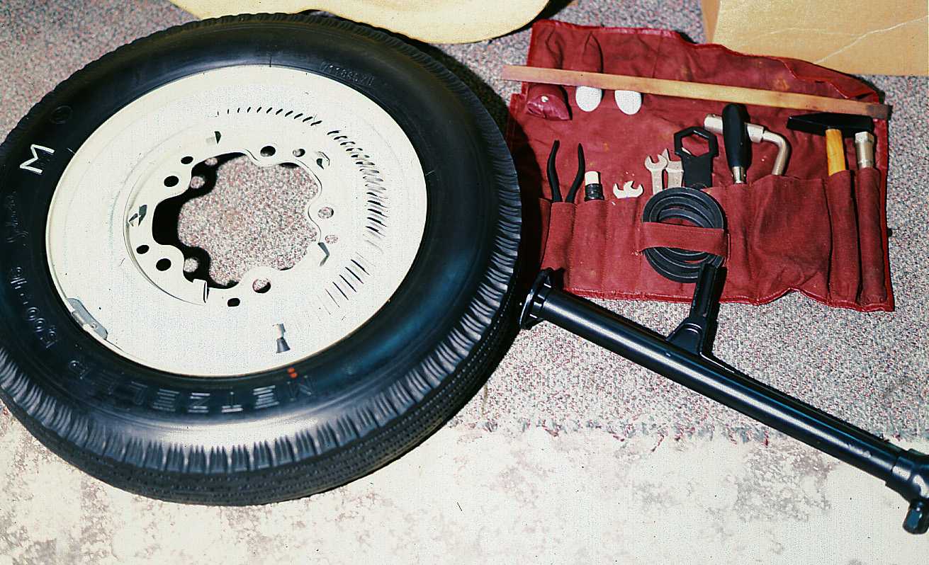 Original tool kit and jack from America/Aluminum Roadster, VIN 12317 delivered in the summer of 1952. As of 2007, this car has less than 10,000 miles from new. The kit was never used, and opened only for show and photographing.